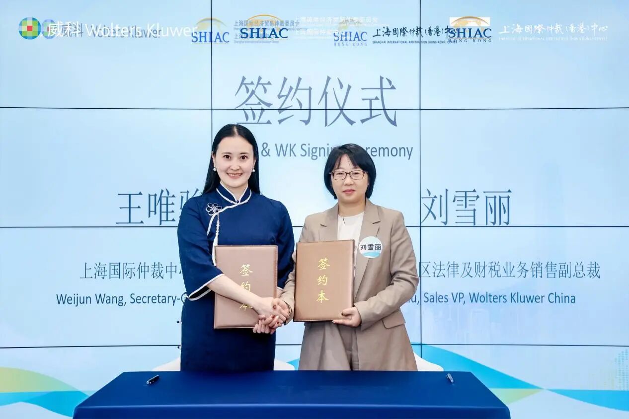 會上還舉行了上海國際仲裁中心與威科集團的簽約儀式。上海國仲秘書長王唯駿與威科集團中國區法律及財稅業務銷售副總裁劉雪麗分別代表上海國仲和威科集團簽署合作協議。未來,兩家機構將在仲裁裁決書脫敏發佈、法律研究等方面進一步加強交流合作。