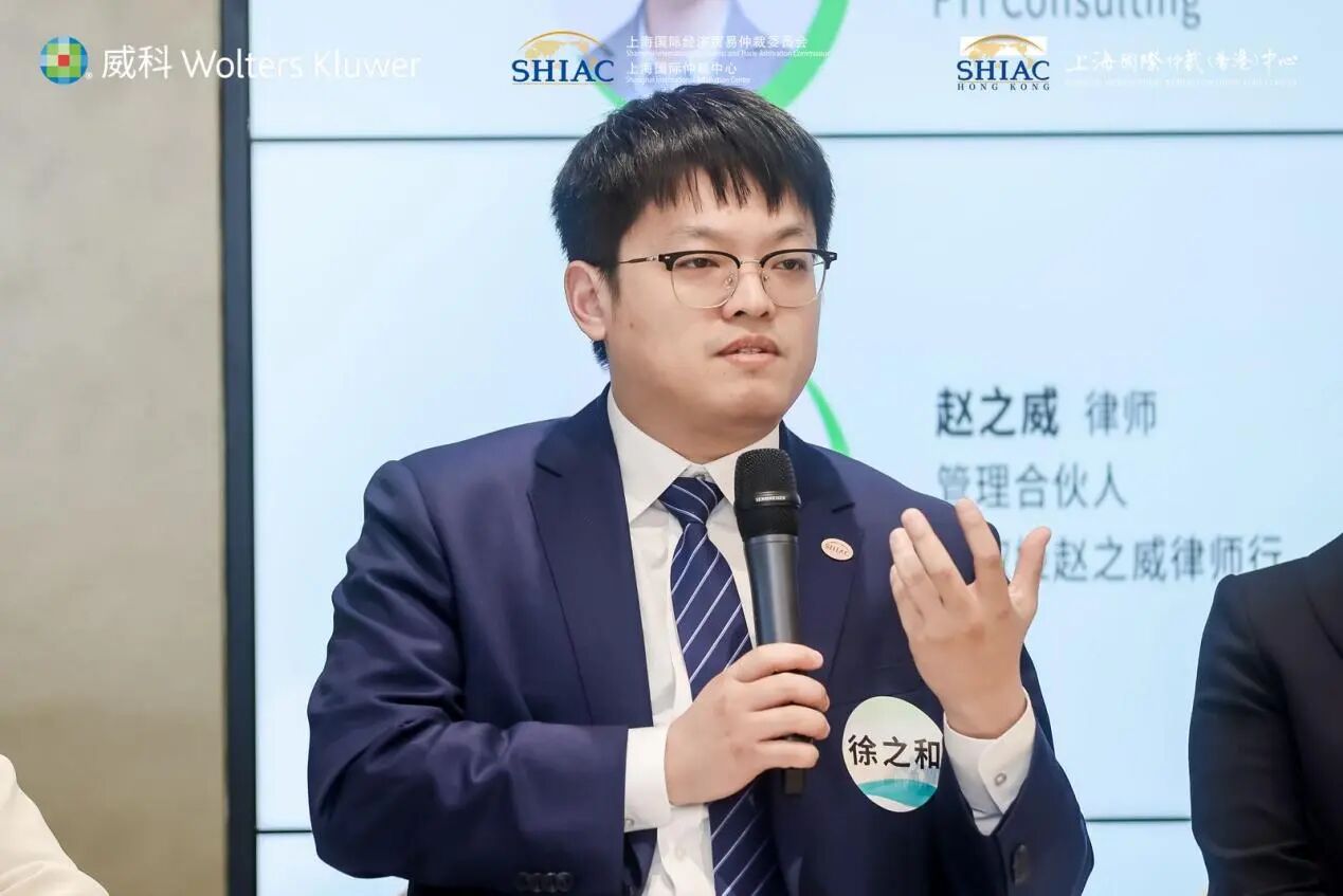 在專題研討環節,上海國仲研究部部長徐之和與徐凱怡律師、趙之威律師、黃婷婷律師以及海普洛斯集團副總裁、海普國際CEO趙永剛進行了圓桌討論。香港仲裁師協會會長、王則左大律師作友情分享。專題研討環節由FTI Consulting董事總經理、大律師陳嘉主持。
