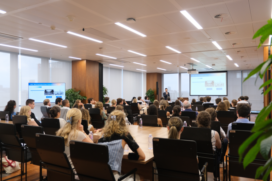 2024年9月18日下午,比利時魯汶大學法學院暑期研學團六十余名學生到訪上海國際仲裁中心(下稱「上海國仲」)進行參觀交流,上海國仲研究部高級主管李挺偉進行了接待。參訪學生團隊由上海交通大學法學院培訓中心楊建澄、董瀟揚帶隊。