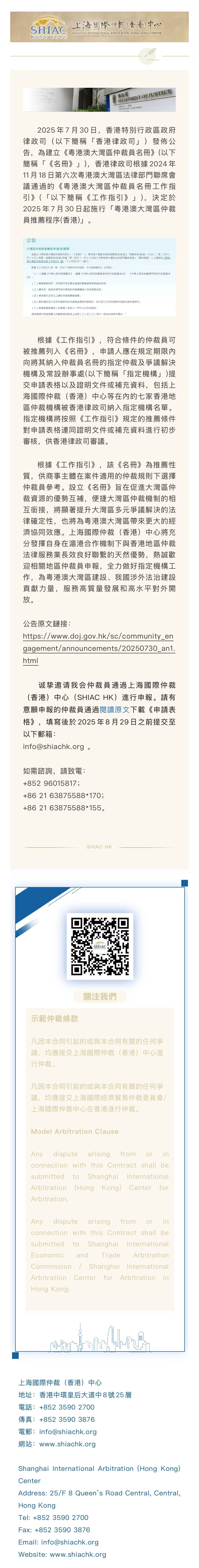 SHIAC HK新聞|上海國際仲裁(香港)中心獲任香港律政司大灣區仲裁員推薦程序指定機構 發布時間:2025-07-30 上一篇:SHIAC HK新聞|上海國際仲裁(香港)中心應邀參加「一帶一路」投資建設總承包合同爭議解決的條款設定與仲裁選擇研... 下一篇:SHIAC HK Named Designated Inst. in GBA Arbitrators HK Nomination 返回列表 >